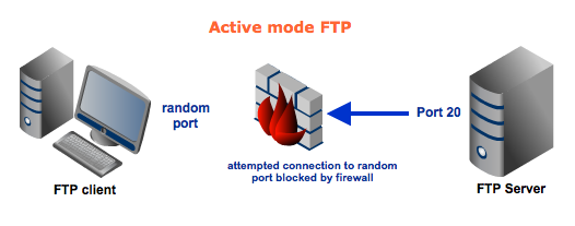 Remember that in an active mode configuration, the server will attempt to connect to a randomclient-side port. So chances are, that port wouldn’t be one of those predefined ports. As a result, an attempt to connect to it will be blocked by the firewall and no connection will be established.